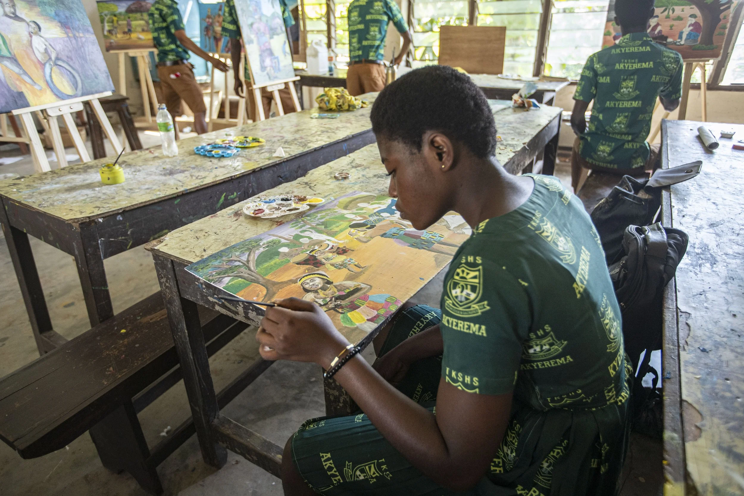In 2017, CTED introduced an Art Competition for students of the TKSHS Art Department to provide support for aspiring, young artists. It is common for Visual Arts students in Ghana to be overlooked or underfunded compared to other programs. The introduction of the Art Competition was created to foster an interest in the Visual Arts amongst students. The TKSHS students who have participated take great pride in creating beautiful works and presenting them to their peers across the school. CTED has continued to do this with the generous support of NYU Africa House Advisory Board Member Mr. Robert Holmes. In 2019 Akyerema Foundation joined in to support and expand the program to reward and encourage more students to develop their artistic gifts.